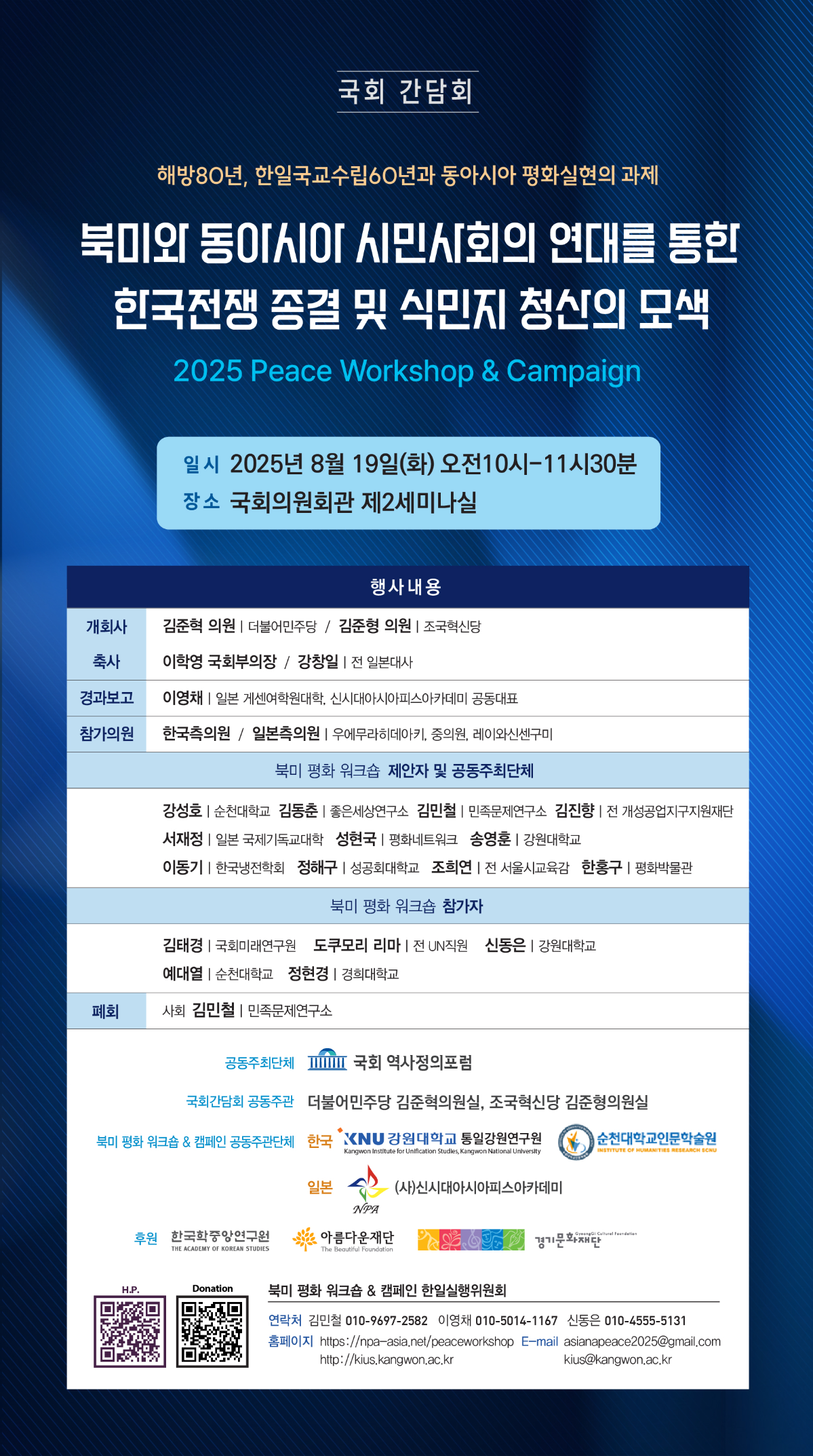<통일강원연구원> 동아시아 평화실현을 위한 국회 간담회 안내